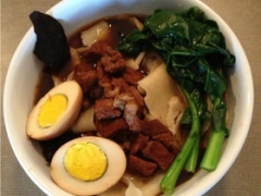牛肉板面历史悠久,是源自安徽省的汉族特色小吃。牛肉板面源于安徽太和,面光滑劲道,汤浓味好,咸鲜香辣袭人。料由20多种香料、辣椒、牛肉、牛油等经精心熬制而成。淮南的做法是把干红椒用温油炸至半糊(偏糊一点),然后把卤牛肉、卤过牛肉的汤一直倒进辣椒和油里,大火煮开后慢火焖,煮到入味。做好以后最好吃的就是那个辣椒 。